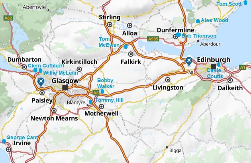 Of the younger pairing on the right was Tom Scott. He hailed from Leven in Fife and before crossing The Pond at the age of twenty-one in 1923 had been on the books of neighbouring Methil's East Fife, again in the Second Division. And on the left was Alex Wood, also a Fifer, from Lochgelly, the nephew of Johnny "Tokey" Duncan, who had just joined Leicester City, where he would become both the star and a Scottish international. And Alex, arriving in the American Mid-West at fourteen but having learned the game Scotland, would go on to international honours himself. Football would take him first to Detroit and then New York, from where he was in the US team that at the first World Cup in 1930 reached the semi-final. That is before returning in 1933 to Britain, in fact to Leicester, from there he would to the outbreak of WWII pursue a successful, English League career, albeit eventually living out the rest of his days back in the States.