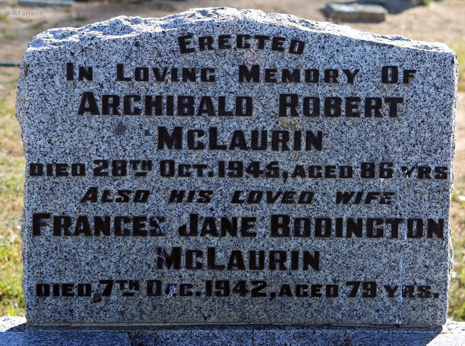 James McLaurin has been born in Dunoon in 1821. He would die in 1891 and in the meantime build up a number of substantial farms, of which Yarra Yarra, which he bought in 1860, would seem to have been the largest. He had arrived in Australia aged eighteen and become one of the earliest settlers first on the Murray River. Then at thirty-one in 1852 he had married Ann Sparrow in Melbourne but she had died the following year and in 1857 in Tumut, New South Wales, he had remarried, his bride, Isabella Rankin from Inverness, with whom he was to have five sons and three daughters. And so it was that four of those boys, James, Gordon, John and Robert, christened Archibald, plus a nephew Thomas, were in the team that day, a team probably made up additionally of farm-hands, some who may have been working convicts. Thomas was twenty-six at the time, would marry locally the following year, have seven children and die in 1931 in Scone, NSW. James was, however, just twenty, Robert eighteen, whilst Gordon and John were sixteen and fourteen respectively, which would explain why in the match-report the two youngest were described as "overweighted", not overweight but the very opposite.