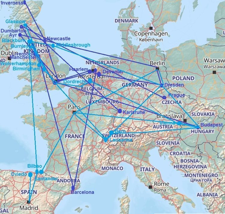 As the nineteenth century became the twentieth the careers were coming to an end of players, who had developed the game post-1888 in Scotland, some of whom carrying it South, as well as those of others, non-Scots who had learned it from The Professors. Most would at that point simply step away from the game and whilst few would as yet take on the new role of Manager that was emerging from that of Club Secretary, more would coach, some employing their knowledge at home clubs and others abroad. Jake Madden of Dumbarton, Celtic and Scotland would probably be the first to go in 1905 to Prague. He would never come back, still openly honoured by the Slavia, the club that was created in his image. And others would follow, Cameron, and McWilliam, Hogan and Pentland amongst them, both pre- and post-War, in person and in philosophy, the traceable web of knowledge based on ideas formed by actually having played the game extending from points North as far east as Budapest, south to Madrid and to many points in-between. And in doing so the seeds were planted of the Hungarian game of the 1950s, the Dutch football of the 1970s, the German teams since the 1950s and Spanish and Belgian blossomings of more modern times.