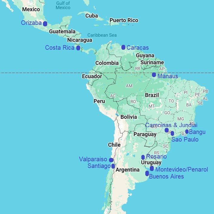 And next to succumb to the contagion would be Chile, also from 1889 with its football association founded in 1895 in the port city Valparaiso by four Scots with the game spreading to Santiago by the end of the decade. And in the meantime it had reached Brazil, at three separate points, in both the city and the state of Sao Paulo and in Bangu by Rio de Janeiro, brought by two more Scots and the Brazilian-born son of one. And the pattern would be repeated elsewhere. First could come Costa Rica in 1899, the Piries and others, then in 1902-3 in both Mexico with Duncan McComish and the Ballantynes of Venezuela and even to the Brazilian Amazon just before The Great War with the Forsyth Trophy.